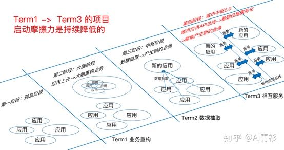 从孤岛阶段开始,到应用上云、业务重构,需要克服强大的启动摩擦力,包括实施成本、项目风险、管理体系配套等方方面面的因素。